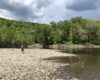 Environmental journalist and activist Karl Meyer take Monte for a walk by the Rock Dam in Turners Falls, perhaps the…